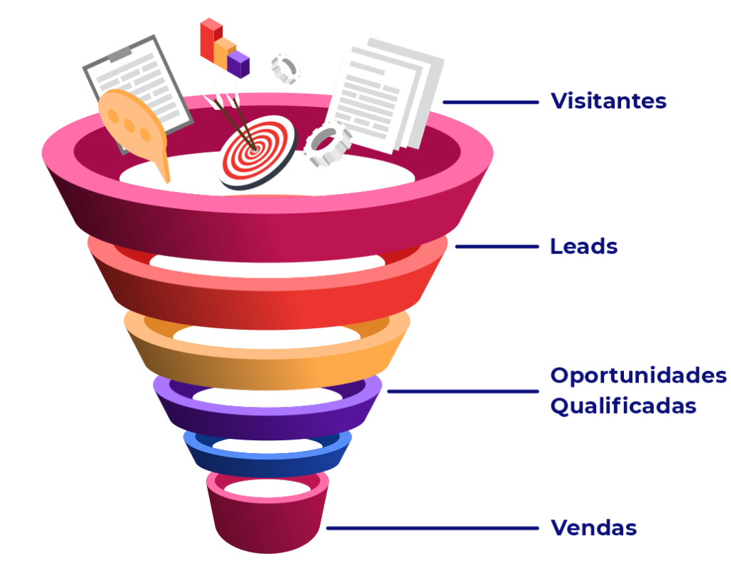 Atração: Inicia-se pela criação de conteúdo atraente e relevante, otimizado para motores de busca e redes sociais. Esse conteúdo visa atrair visitantes interessados em suas soluções.